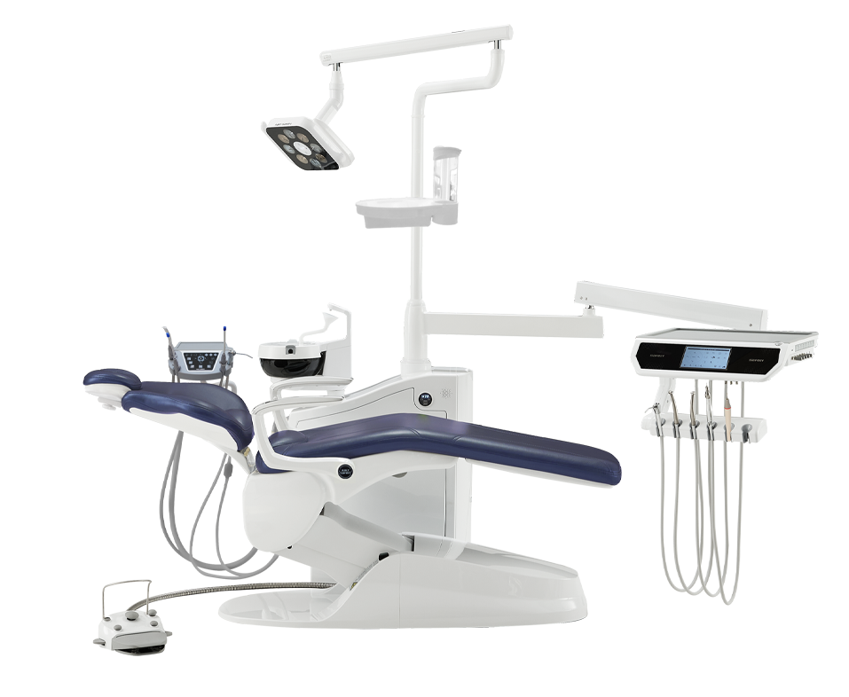 · Movable spittoon and side box for flexible positioning.